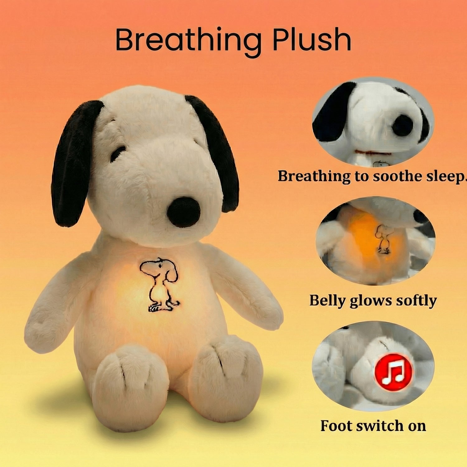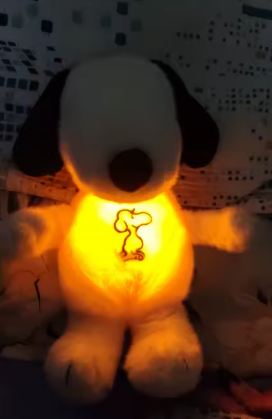 The Glowing Breathing Snoopy is a soft, calming plush designed to bring comfort at bedtime. Its gentle glow and soothing breathing effect help create a peaceful atmosphere that supports relaxation and sleep.